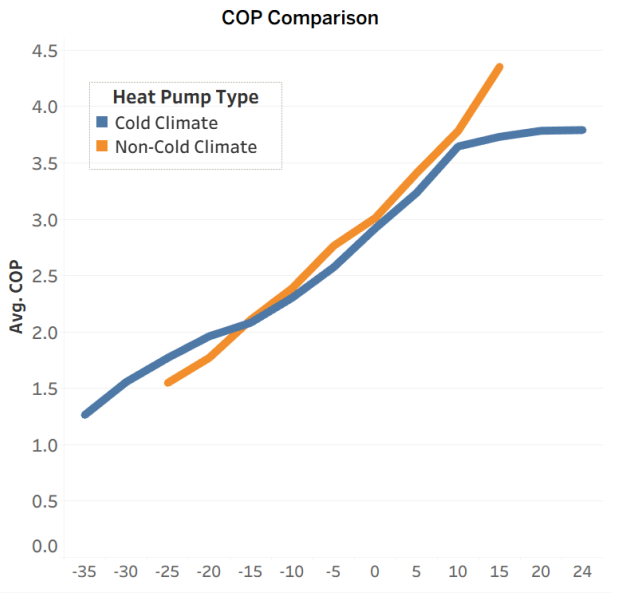 Another side note, the COP of air-based heat pumps is usually lower than ground-based heat pumps.