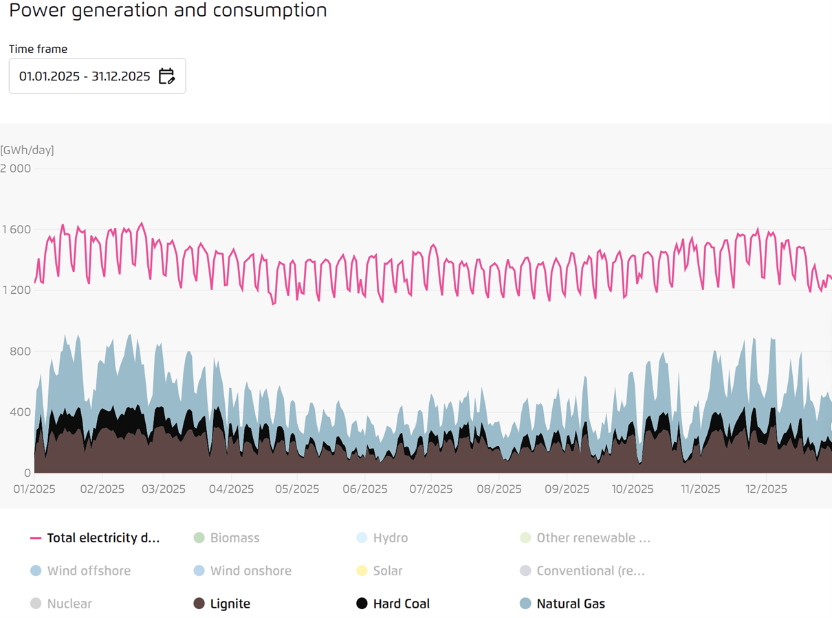 Figure 3: Germany power generation from coal and gas during 2025 | Source: Agora