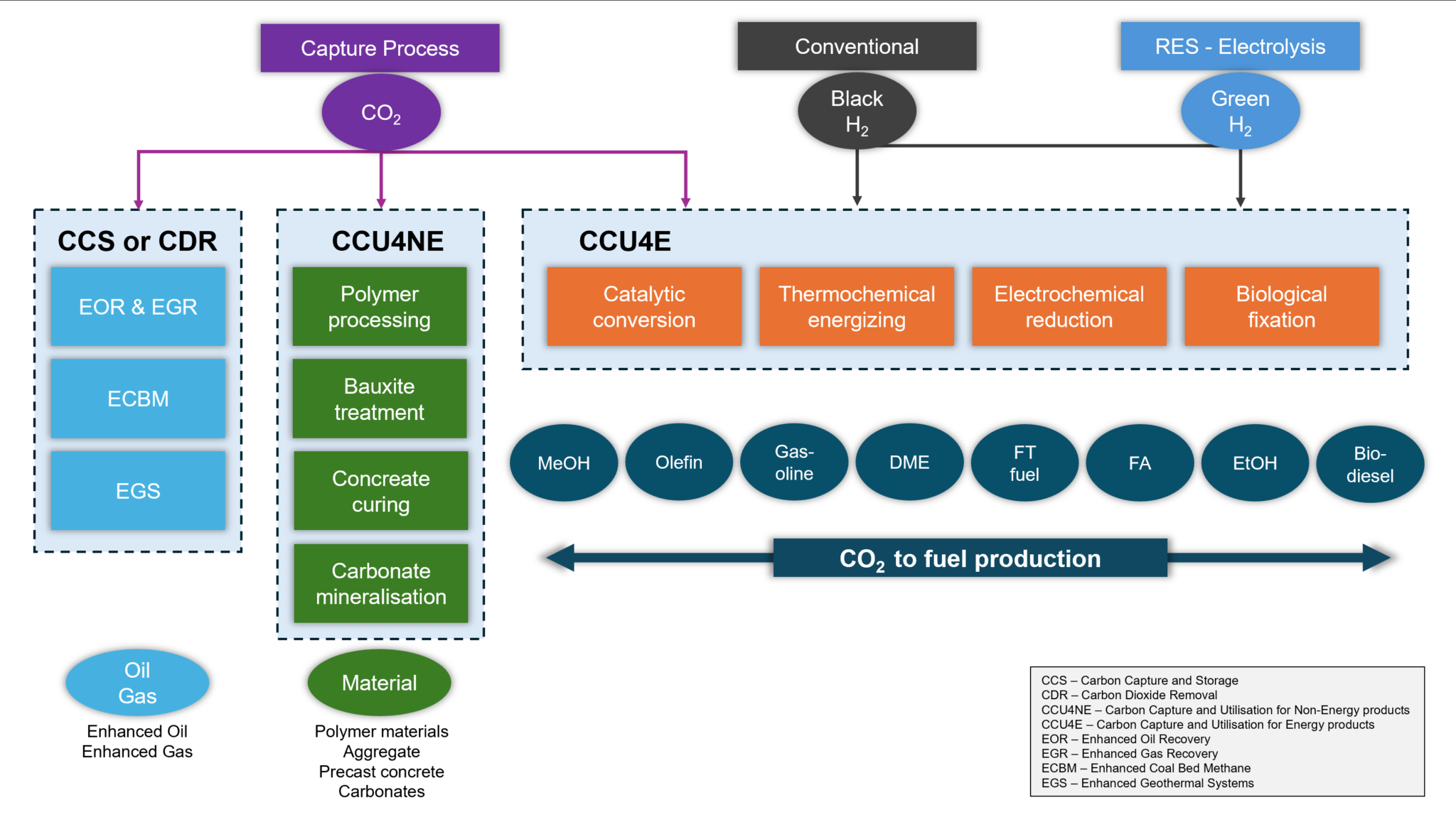 CCU steht für CO₂-Abscheidung und -Nutzung. Bitte beachten Sie, dass die Verwendung von CO₂ zur Herstellung von Kraftstoffen oder Chemikalien dieses nicht aus der Atmosphäre entfernt. Es bedeutet, dass zusätzliche Energie aufgewendet wird, um aus CO₂ andere Produkte herzustellen, in der Regel Kraftstoffe, die später das gleiche oder sogar mehr CO₂ freisetzen.